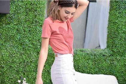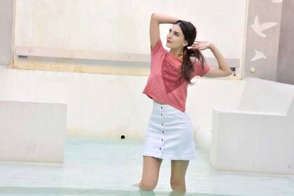 En este caso particular, los aires setenteros se respiran de pies a cabeza, porque se trata de una falda en denim blanco, ideal para el verano y por qué no con un sweater y botas largas para el invierno también, combinada con una remera de algodón básica y unos suecos en madera, ideales para una tarde de verano.