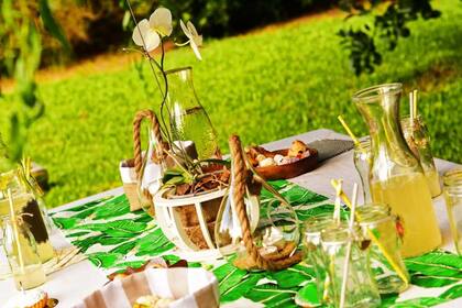 Decidí preparar una mesa con cosas ricas y bastante colorida, para el atardecer jugos frutales y más tarde algo con un poco más de burbujas para brindar. Como es mi cumpleaños quiero relajarme, asi que dejo todo armado y cuando vayan llegando los invitados; cada uno puede servirse y sentirse como en casa.