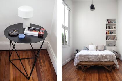 Así como Juana hoy duerme y juega en el cuarto de la adolescencia de Flor, ella heredó el dormitorio principal y lo armó a su estilo con un banco de listones de madera (Sticotti) a los pies de la cama, mesas de luz de hierro (Nomo Estudio) y veladores con base de cemento (Estudio Chalé), negro para Pato y blanco para Flor. De su lado, armó una biblioteca para sus libros de diseño, arquitectura y novelas policiales, que son sus favoritas: "Era una ventana tapada y aproveché el agujero para ponerle estantes". La premisa de diseño fue generar un espacio de relax, para leer, ver series y descansar. Su ritual, antes de dormir: hacer un recorrido por la casa, para que todo quede en orden. "¡Soy medio obse!", confiesa.