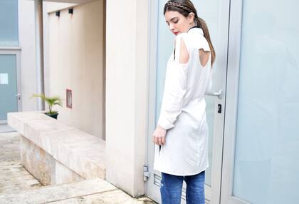 La primera (hombros cut out), que es la que se expone en el look de hoy, el recorte se encuentra en la blusa específicamente en los hombros, mientras la segunda (off the shoulder) es un tipo de escote también para blusas o vestidos, pero que deja completamente al descubierto los hombros.