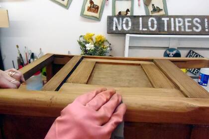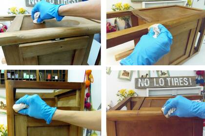 Luego, con un trapo embebido con thinner o aguarrás, limpiá en profundidad el mueble . El solvente va a arrastrar ceras viejas, polvo, y la grasitud acumulada.