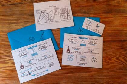Descartada esta opción, encontré una que también me gustó mucho, estaba hecha en letterpress y es una técnica de impresión con relieve. Inspirándome en este modelo, y con mis conocimientos básicos de Illustrator las armé (obviamente Jime me hizo un par de correcciones antes de mandarlas a imprimir!!) Busqué en internet y encontré a unas chicas que imprimen con esta técnica acá en Argentina, se llama Mil Letterpress . Ellas me ofrecieron varios tipos de papeles y cartones en dónde se podían imprimir, y nos definimos por un cartón gris.