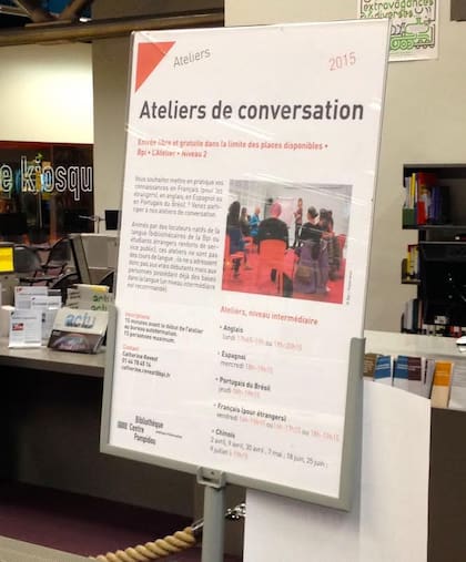 También me di una vuelta por la biblioteca del centro Pompidou donde tenés a disposición varios libros y CD de gramática francesa. Dato: hay talleres de conversación en francés que se realizan los viernes.