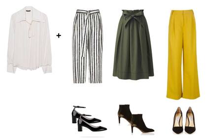 Hacelo simple. Un par de jeans siempre es un buen aliado, y dependerá la ocasión para saber si a esa camisa puedes añadirle un collar, una remera de color por debajo o incluso pines de tendencia. Para situaciones más formales, aparte del pantalón negro están las faldas midi, así como las plisadas. No tienen por qué ser en tonos neutros, sino que podés sumar los colores de tendencia, tales como amarillo, rosa, azul, e incluso en textura denim.