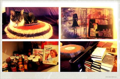 Pero este viernes, ahí estaba yo, con la sensación de la máscara de pestaña endurecida a un costado de mi nariz, siendo plena, profundamente consciente de que a pocos metros me esperaba aquello que representa mi realidad hoy: un pequeño departamento, con pisos de madera, colores vivos en un cuadro imponente, discos de vinilo, un teclado, muchos libros desordenados y una cocina invadida de especias, como le gusta a papá. Mi gata Simona, sobre un almohadón de funda tejida.
