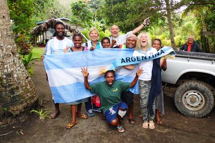 En mitad de la travesía, el mundial de Río de Janeiro irrumpió en el viaje. Coincidió con la llegada de la familia a la isla del pacífico Vanuatu, un lugar donde hay vida en chozas de barro y paja, la gente vive descalza y en lugar de dinero el trueque es el principal mecanismo económico. Los nativos de Vanuatu sabían que los navegantes venían de la Argentina (sin haber visto nunca a un argentino y sin saber dónde queda el país) y sabían del partido porque habían oído hablar de Lionel Messi. Estas mismas personas insistieron a la familia para ver la semifinal entre la Argentina y Holanda. Por esta razón, el director del único colegio de la isla preparó una sorpresa: instaló dentro de cuatro paredes de barro un proyector y una manta en el piso para que la familia y los que quisieran pudieran ver el partido.