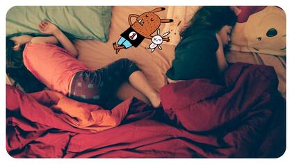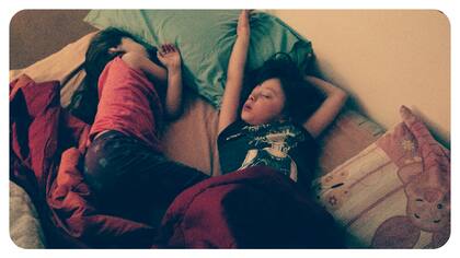 Hijas patean, se dan vueltas, se expanden, dibujan diagonales, líneas horizontales; no hay pizca de organización del cuerpo en la cama, no importa que la almohada esté de un lado, que a su lado haya otro ser humano... (demos gracias que no se caen).
