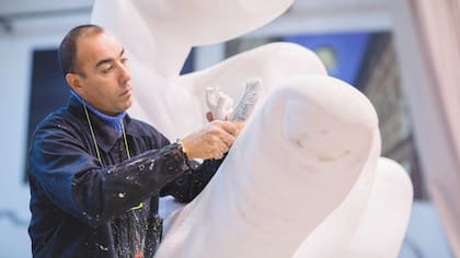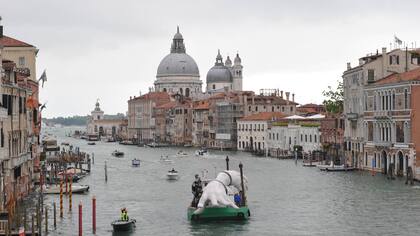 La escultura creada por Lorenzo Quinn, durante la Bienal de Arte, intenta llamar la atención sobre las consecuencias del calentamiento global