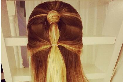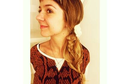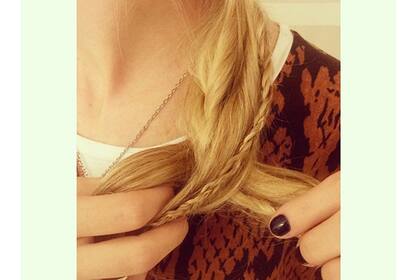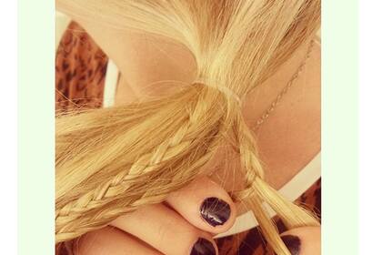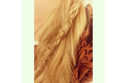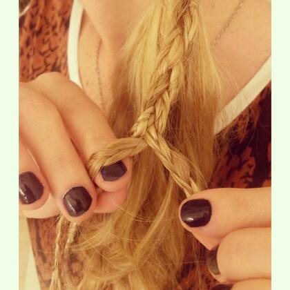 5. Hacé una trenza muy muy muy suelta con todo todo el pelo (incluso las trenzas que hicieste) y atalo al final. Para darle una linda terminación, cubrí la gomita con un mechon de pelo y fijalo con spray.
