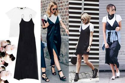 Esta versión bien noventosa del Little black dress volvió para quedarse. Se trata de un vestidito lencero, de seda o de gasa, de tirantes finitos y con algún detalle de encaje. En pareja con una remera blanca se lleva todas las miradas. Es un vestidito muy versátil para combinar con otras prendas.