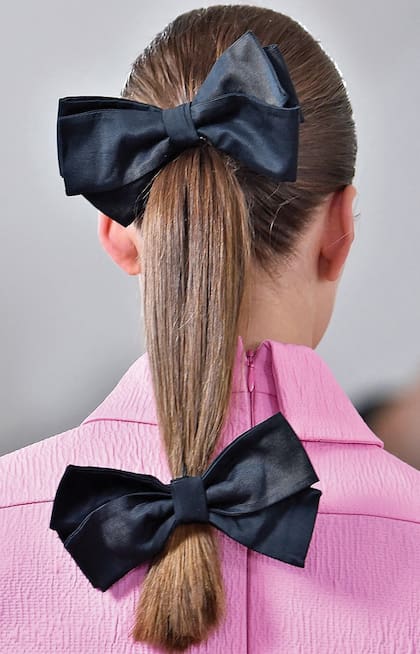 Los moños y las trenzas se vieron primero en el desfile de Chanel y después... ¡por todos lados! Los peinados escolares están de moda: colitas con dos moños (como en Emilia Wickstead), trenzas cosidas (en Galliano) o colitas decoradas con scrunchies coloridas (en Jour/Ne). Sacale los accesorios a tu mini-vos y jugátela con un peinado escolar.