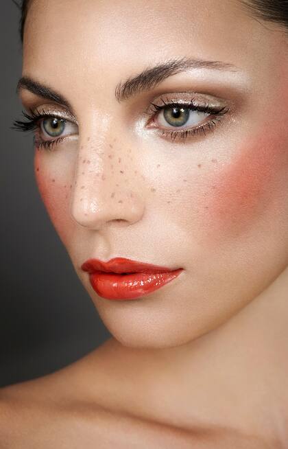 Prepará tu piel con agua de rosas y mezclá tu base con tres gotitas de aceite de jojoba orgánico. Podés ponerte la cantidad de capas de base que quieras y se va a ver siempre fresca y natural y va a durarte todo el día. Sumale, aplicando con el dedo, sombra satinada en el párpado y una con un toque de glitter en el lagrimal.