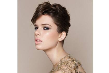 ¿Qué se hizo? Se emparejó con base y se iluminó con corrector. Para los ojos, se usó una paleta dúo iluminando bien el lagrimal y delineado esfumado en negro (con crayón de khol) para dar definición. Terminaron los ojos con máscara de pestañas waterproof , polvo rosa y labial Rose Boudoir . El pelo, corto con ondas naturales y raya al costado.