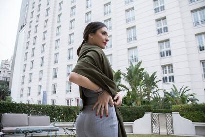 Entonces vayamos paso a paso. Tenemos por un lado, dos piezas con una confección muy particular, que no tiene relación con el icónico traje pero sin embargo podría pertenecer perfectamente a esa nueva oleada de conjuntos cuyo resultado dan un total look. Pero si ahondamos mas en los detalles advertiremos que especialmente el top con la espalda cruzada con vuelos es súper femenina, como lo es por su parte el pantalón tiro bien alto gracias a su cinturón tipo lazos, que rompe con la clásica prenda que todas conocemos.