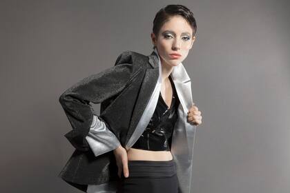 En la Argentina, las chaquetas metalizadas forman parte de las colecciones de los diseñadores más reconocidos para este invierno. El tejido brilloso reinventa la sastrería, como sucede en el blazer tramado de lúrex de Clara Ibarguren, que además puede llevarse superpuesto con otro de un peltre diferente que multiplique el efecto: saco plata sastrero Alpha de Ayres. Por debajo, el top Geton de Allo Martínez mete más textura con vinilo.