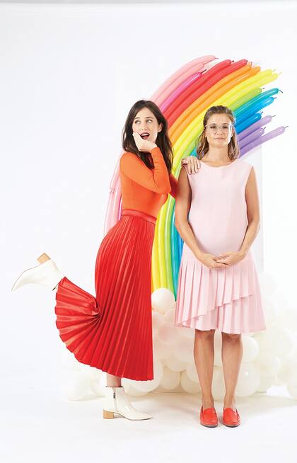 Agustina Vissani (secretaria de redacción). Body, Soifer, $1500. Falda, Valentina Karnoubi, $14.250. Botinetas, Prüne, $8190. Romina Salusso (redactora). Vestido, L’academie. Mocasines, Prüne, $6590.