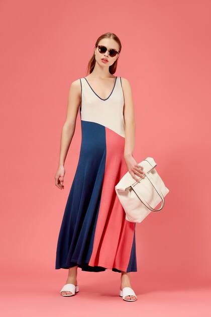Túnica colorblock (Uma), sandalias (Jeffrey Campbell), cartera (Prüne), anteojos (Rayban).