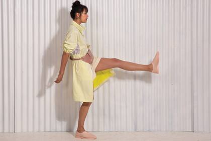 Vincha con moño, Florencia Tellado, $3500. Top de ecocuero, Mila Kartei, $8500. Short, Las Pepas, $6990. Pañuelo como cinturón, Helicia, $1890. Zapatillas, Prüne, $7990.