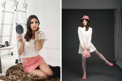 Izquierda: remera, Las Pepas, $700. Falda, Basilotta, $900. Collar a modo de pulsera, Complot, $180. Bucaneras, A Pie by Grimoldi, $4000. Derecha: sombrero, Florencia Tellado, $3000. Vestido de corte A, Vitamina $3200. Mini-bag, Las Pepas, $2500. Medias, Mora, $100. Zapatos, Quiero June, $2600.