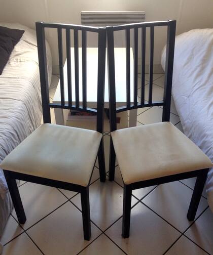 Una tarde trabajando vi como el vecino dejaba seis sillas en la calle, estaban impecables. En el instante salí a recuperarlas y hoy forman parte de mi ‘living’. Lo mismo pasó con la mesa negra que pueden apreciar en la foto :)
