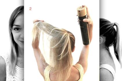 2- Abrí la colita y tirá spray, para despeinarla un poco y darle volumen.