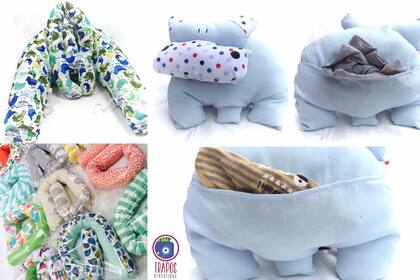 Nuestros preferidos: El súper kit mama & bebe con almohadón para amamantar, nidito contenedor y cuellito cervical $1150 y el almohadón portapijamas $200.
