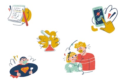 "Tomy tiene dos o tres clases virtuales por día. Las disfruta porque está con sus amigos, pero lo que le cuesta más es hacer la tarea después. Lo que normalmente le puede llevar cuarenta minutos le lleva hora y media, porque se distrae, se frustra, tiene hambre, tiene sed. Y uno pierde más la paciencia. Entonces con Fer, mi esposo, nos dividimos. Y Manu, en salita de 2, ya no se quiere conectar a nada más. La maestra nos dijo que no lo obliguemos. Hay un site del colegio donde cuelgan actividades y de ahí tomo algunas cosas cuando está de humor. Hoy nuestro desafío es acompañarlos a los dos sin frustrarnos nosotros y sin que se frustren ellos".