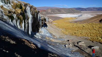 "Aquí han venido investigadores de todo el mundo para tomar muestras del agua de esta laguna, ya que en ella habitan algas y hongos capaces de sobrevivir en entornos muy adversos, con muy poco oxígeno y bajo una radiación ultravioleta muy intensa. Estas algas y hongos están directamente relacionados con los primeros organismos que poblaron la Tierra, que fueron los que liberaron oxígeno a la superficie para posibilitar que el planeta fuera habitable", resume el guía. A su alrededor, el paisaje parece sacado de un relato de ciencia ficción. El aire escaso obliga a respirar lento y profundo.