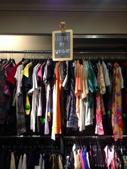 Para quienes les guste revolver y revolver hasta encontrar algún "hallazgo", les presento a: Kilo Shop. El concepto es simple, uno paga por kilo. Las prendas no tienen precio sino que están identificadas con una etiqueta de color: rojo, verde o naranja. Uno elije la prenda y la pesa. En la balanza, hay que digitar el color de la etiqueta y según el peso, es el precio que se le asigna a la prenda.