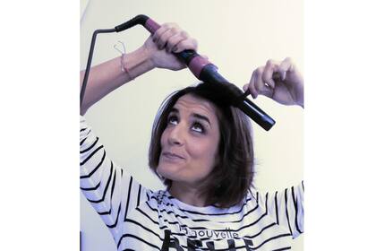 2. Una vez hecha la capa de abajo, empezamos por la de arriba. Acá la clave oficial es agarrar mechones grandes de pelo, y hacer un rulo para un lado y otro para el otro. Pero recuerden, que el mechón sea grande, así se enrula desprolijamente y queda la cosa esta quebrada copada.