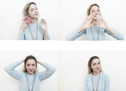 1- Primero, vas a ponerte un producto espectacular en la parte de arriba de la cabeza. La clave de este producto es que te lo desparrames bien en las manos y que no presiones cuando te lo aplicás. La idea es que quede un efecto natural pero a la vez estático. El producto es de Schwarzkopf y se llama "fibre gum". Si no tenés ese producto en tu casa o te cuesta conseguirlo, ponete un poquitititittito de crema para peinar, también podés obviar todo y hacerte el peinado sin productos, para usarlo todos los días.