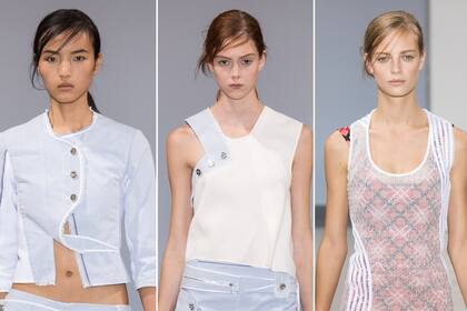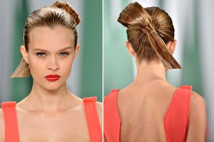 En la pasarela pudimos ver cómo la diseñadora eligió recogidos bajos, con estricta raya al medio, pero suavizó los looks con algunas mechas sueltas alrededor del rostro. Un estilo elegante y fácil de reproducir para los pelos largos o intermedios.