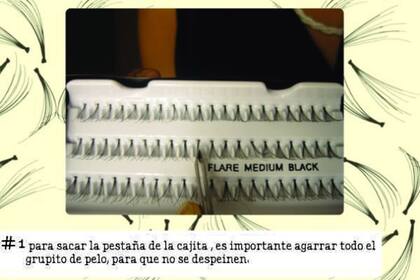 La pestaña se pega directo al pelo y tocando el párpado. Así logran que queden fijas pegadas al pelo y se vean naturales porque salen del párpado.