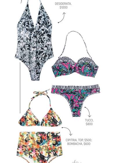 Hombros y cintura angosta con caderas más pronunciadas. Si sos la versión argentina de J-Lo, apostá con fuerza a la parte superior con corpiños coloridos: un mix and match de top estampado y bombacha lisa es una gran alternativa porque armoniza la silueta.