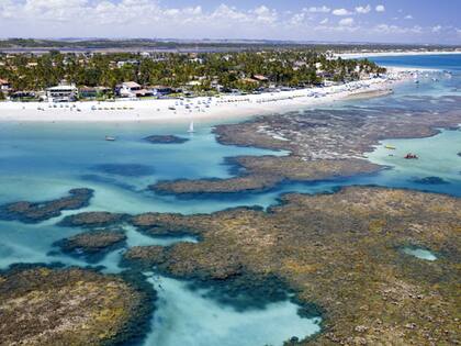 Porto de Galinhas se las arregla para recibir viajeros de todos los frentes. Consolidado como uno de los destinos de referencia del Nordeste, su provisión principal de turistas es del propio Recife, cuyas costas, por impacto ambiental y la letra chica del progreso, son un espeto corrido para los tiburones.