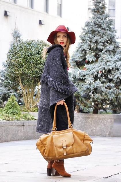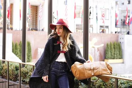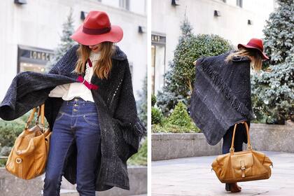 Tanto el poncho hecho a mano como el sombrero pertenecen a la misma tendencia que es la denominada folk y se complementan sin caer en lo exagerado o en el uniforme. Pero siempre y cuando las prendas que los acompañen aporten un look urbano, como en este caso una camisa blanca, un jean tiro alto y unas botitas de gamuza con taco.