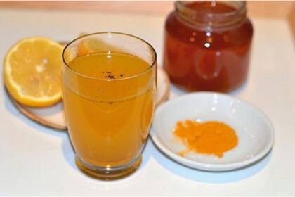 Herví el agua en una ollita y agregale la cúrcuma, luego poné el fuego en mínimo y mantenelo así revolviendo un poco durante 15 minutos. Después colalo, aagregale miel y jugo de limón o jengibre. Está listo para tomar.