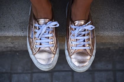 Para terminar mi outfit y poder pasear y recorrer cómoda, estas zapatillas en dorado rosado son la mejor opción, y terminan de dar el toque final que necesitaba para estar lista para pasear por las calles de Rosario y pisar fuerte.