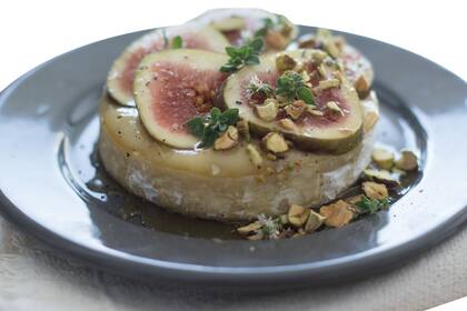 Qué lleva: 1 horma chica de Camembert / 2 higos / 1 cucharada de miel / 50 g de pistachos