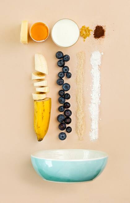 Tamizar la harina en un bowl. Aparte, en otro bowl, pisar la banana. Agregarle al puré de banana el huevo, la leche, la manteca derretida, el azúcar, la canela y la ralladura de limón. Por último, integrar la harina y mezclar hasta formar una pasta homogénea. Sumar los arándanos.