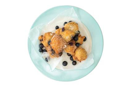 Esta receta es fácil, rápida y además, con mucha onda, porque los arándanos le dan un toque diferente a los buñuelos de banana tradicionales.