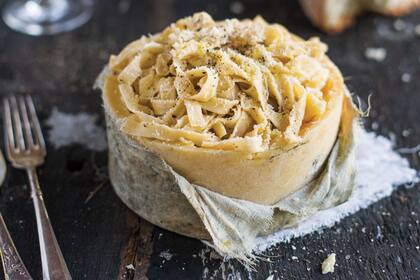 El parmesano se produce en la región italiana de Emilia Romana y recién puede venderse luego de dos años de estacionamiento. Es picante a veces, con pedacitos de sal acumulada.