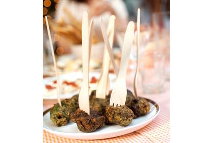 Elegimos un menú veggie de finger food diseñado por Copetín con tarteletas, risottos mini, croquetas, gazpacho de verano, pinchos, ensaladitas frescas, sándwiches y tabla de quesos, entre otras delicias.