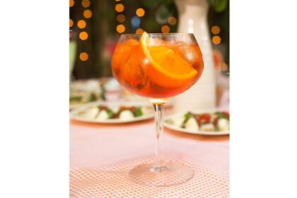 Llenar una copa con hielo. Servir el Spritz y el espumante. Completar con soda y decorar con el gajo de naranja.