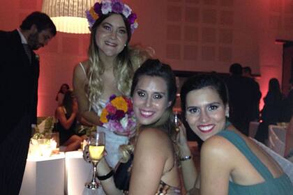 El sábado me fui a la casa de mis papás tempranito, almorcé con ellos y terminamos con algunos detallecitos que quedaban para la fiesta. A las 16 llegaron la maquilladora, Pao Dessaner, y la peinadora, Flor Corsini. Ellas nos prepararon a mi mamá, mi hermana, Car (una de mis amigas) y a mí. Más tarde llegaron la fotógrafa, de Estudio Luchia Puig, que vino a hacer el backstage y las fotos del vestido.
