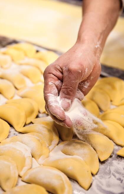 Nuestro favorito: los torteletis de ricota y borraja (una planta de las zonas mediterráneas similar a la espinaca) son uno de los preferidos del menú.