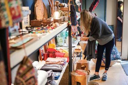Una vidriera con tanto color que llama la atención y es imposible no entrar a ver qué onda. Mema y su hermana Karina Buglioni producen cada uno de los colgantes, pulseras, aros y anillos que venden. Atrás del mostrador se puede ver el taller invadido de piedras, mostacillas o metales. Sus audaces collares, tipo africanos, y las pecheras de metales y piedras (desde $360) son ideales para darle un toque diferente a cualquier outfit.