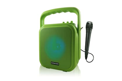 Parlante portátil con bluetooth y micrófono, Panacom, $2800.