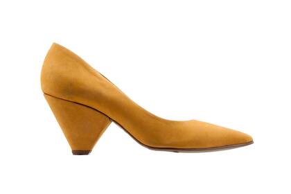 Zapato mostaza con taco intermedio, A pie para Grimoldi, $3450.