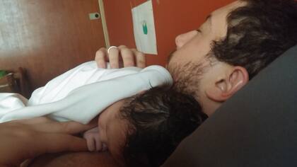 Al ratito el doctor me dijo: "Mirá, esta imagen que va a aparecer ahora nunca más te la vas a olvidar…" Y apareció Mariano (inmenso como persona y padre) y vos (pequeño mío) en brazos, acurrucado y arropado. Nos fuimos a la habitación y no te solté nunca más.